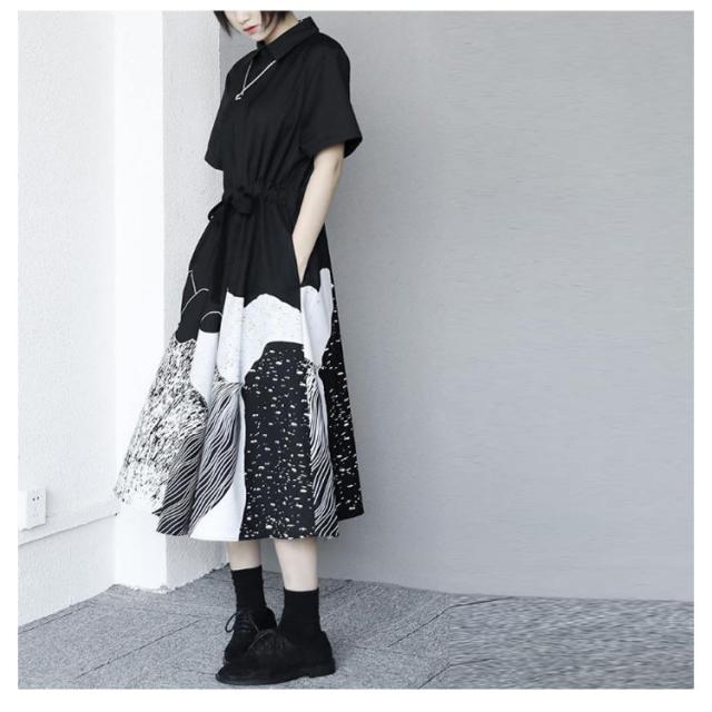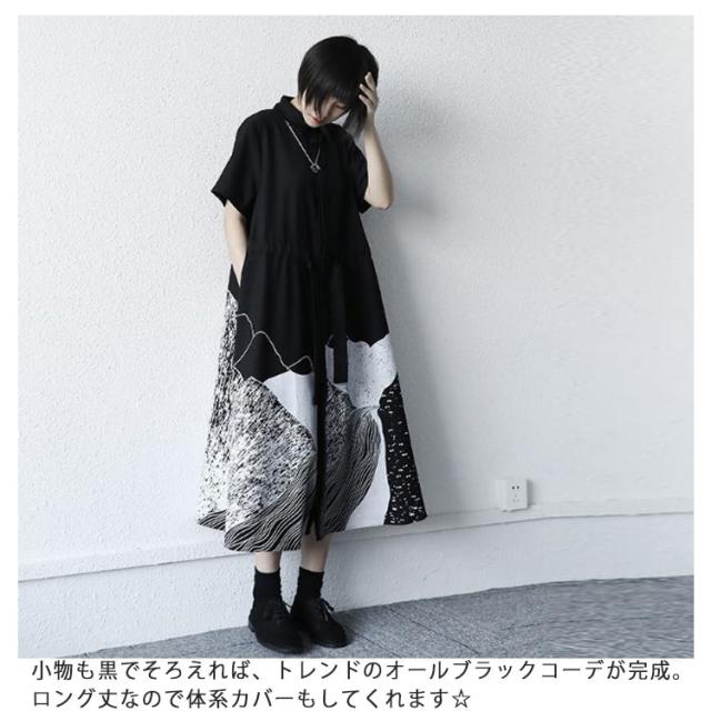 | トレンド感が溢れる切替ワンピース。 軽くて風通しのよいコットン素材は、暑い日も涼しげに過ごせます。 ボトムス部分の柄は一気にモード感が高まります! 小物も黒でそろえれば、トレンドのオールブラックコーデが完成。 ロング丈なので体系カバーもしてくれます☆ | |
