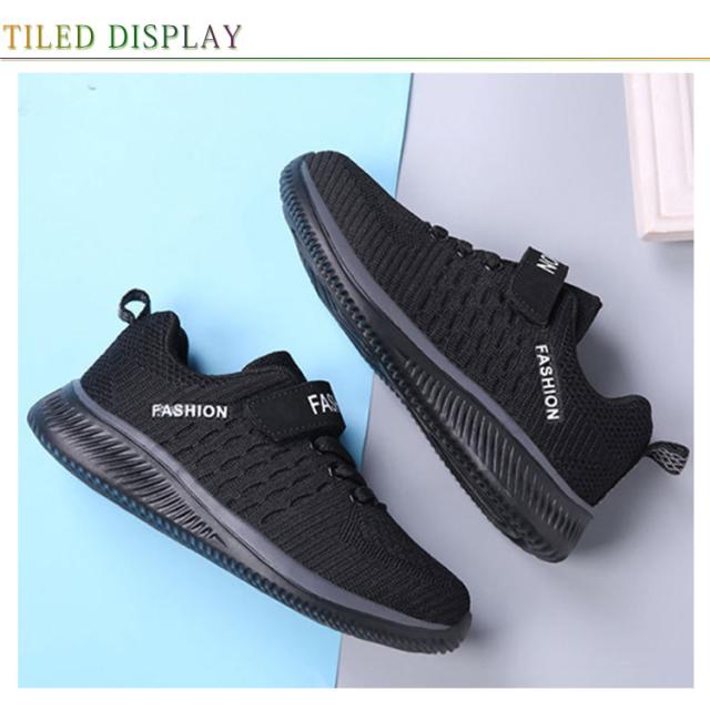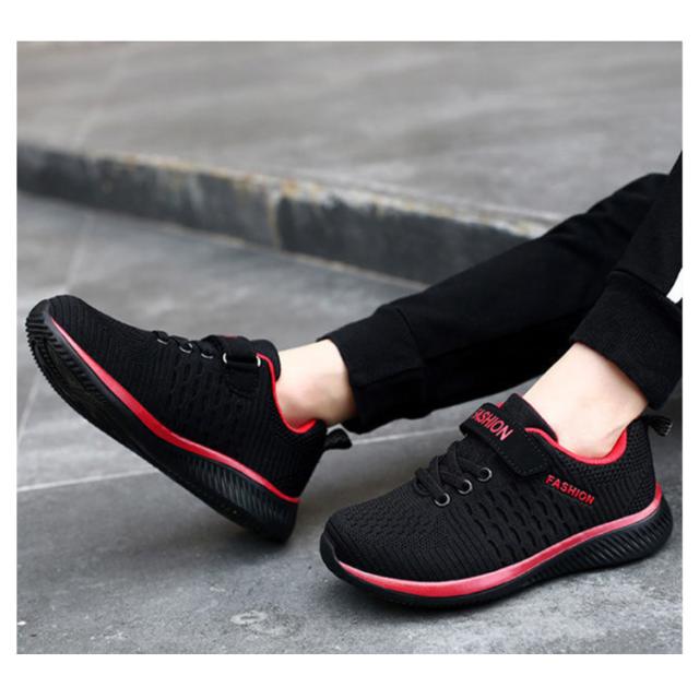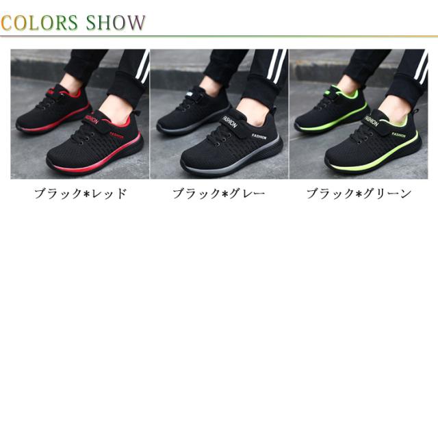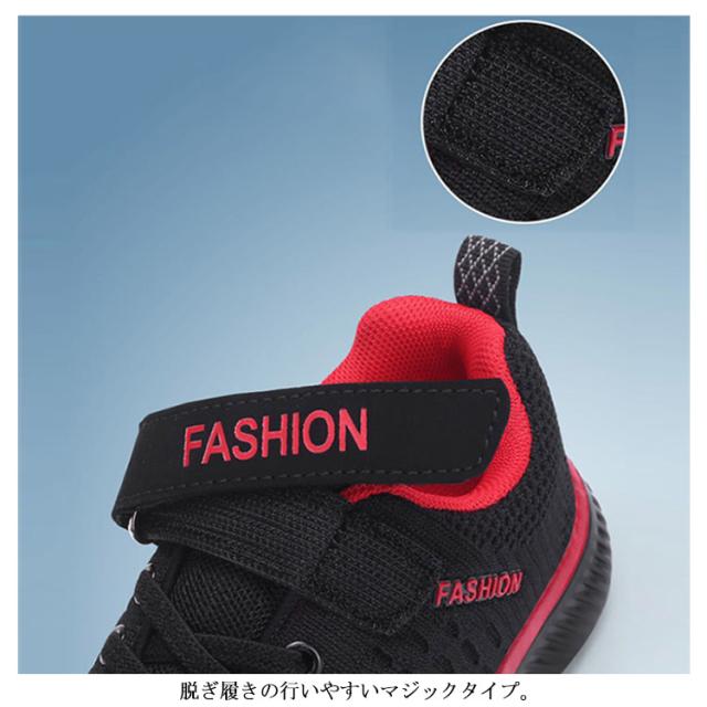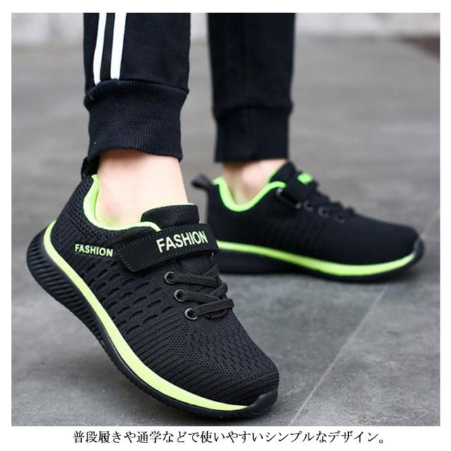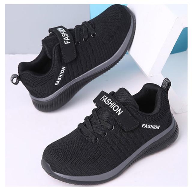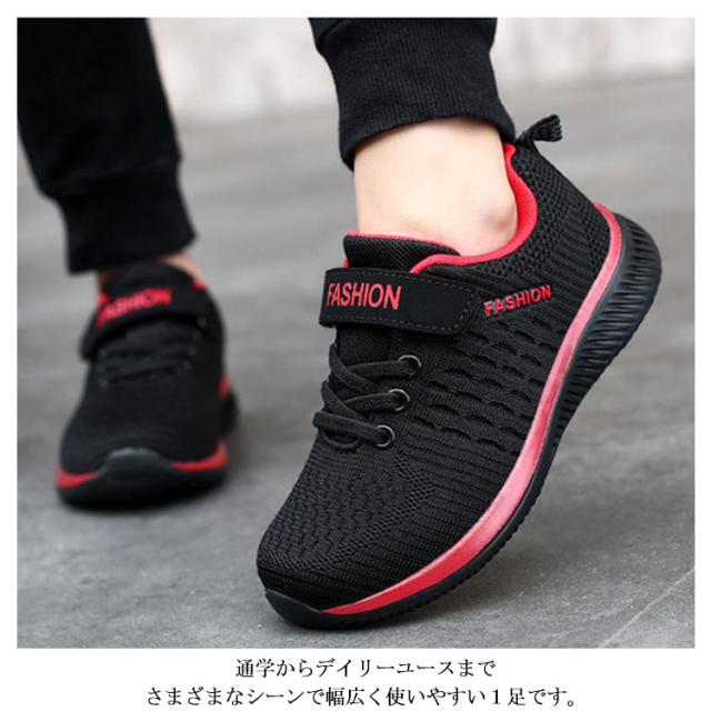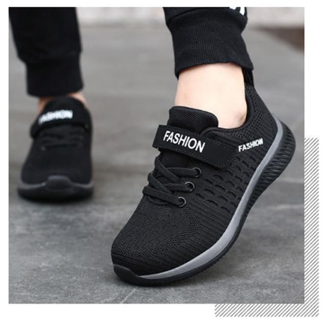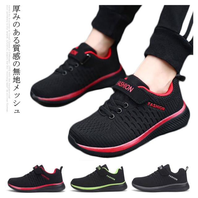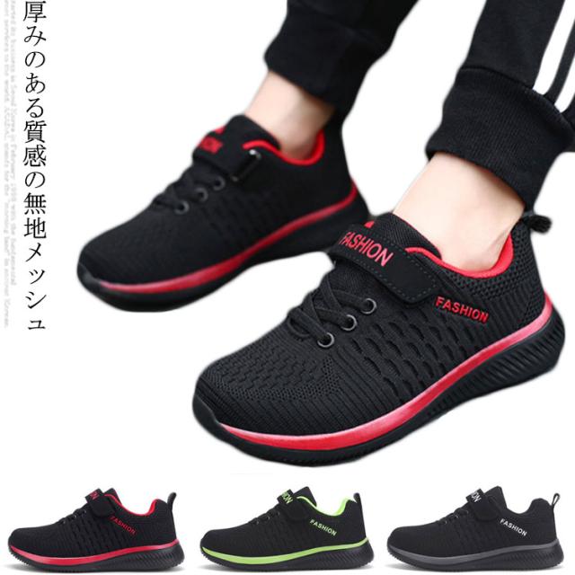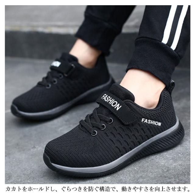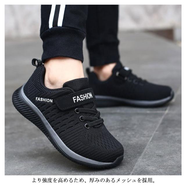 キッズ スニーカー ジュニア マジックテープ ランニングシューズ ウォーキングシューズ 靴 男の子 女の子 通気性 軽量 疲れにくい ブラック 黒