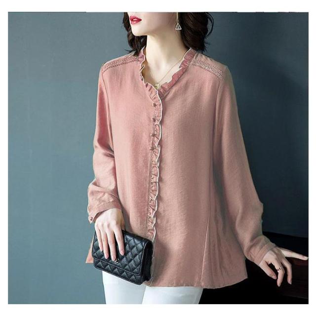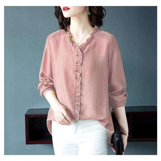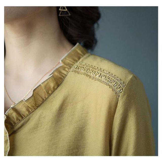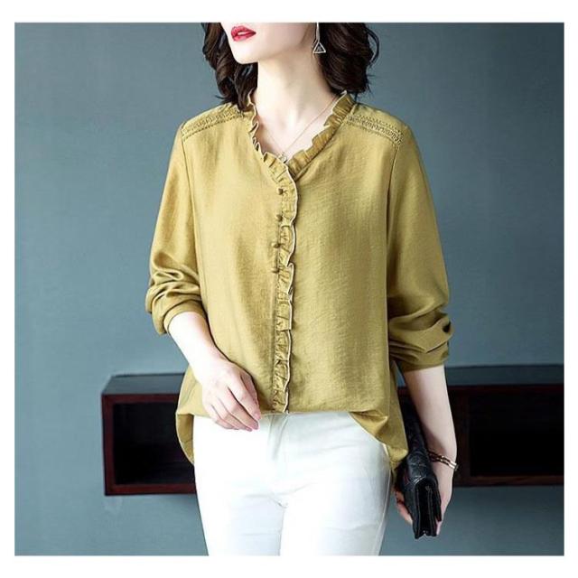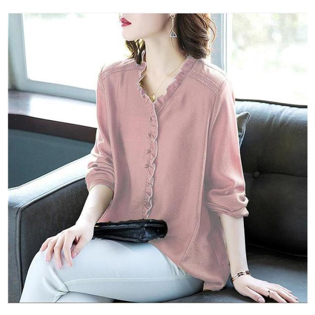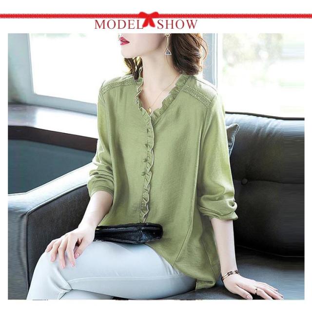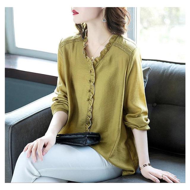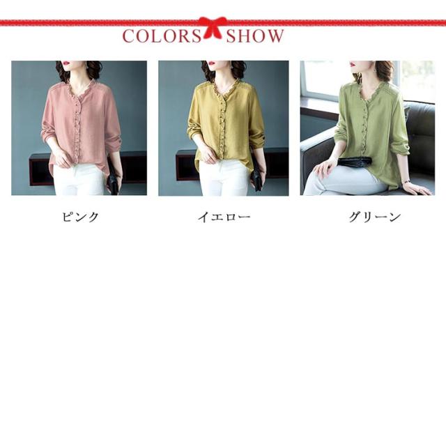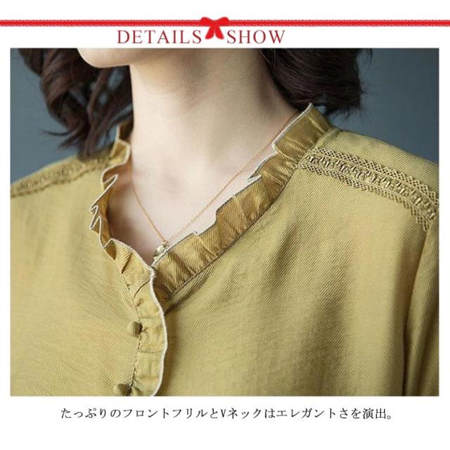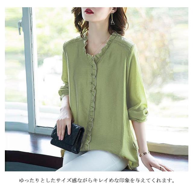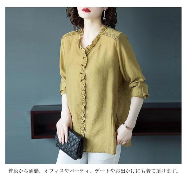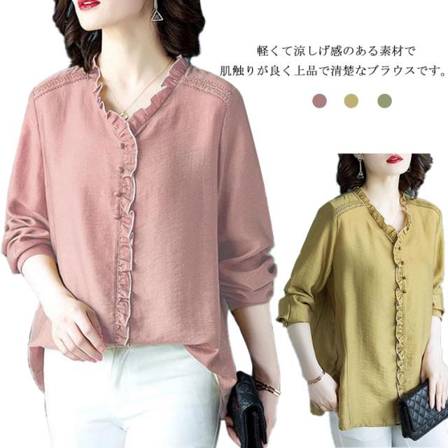 シャツ ブラウス レディース 長袖 フリル Vネック 2021秋新作 きれいめ おしゃれ 30代 40代 50代 春 トップス ゆったり カジュアル?ファッション フェミニン 無地 エレガント 通勤 オフィス 送料無料