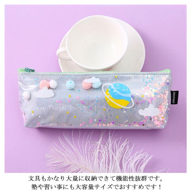 ペンケース 筆箱 オーロラ 星空 クリア レインボー 虹色 動く 透明 ペンポーチ 大容量 小物入れ 女の子 中学生 小学生 高校生 女子高生 スリム ふで箱 文房具 ふでばこ