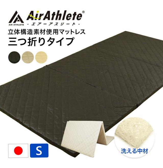 高機能素材 エアーアスリート 3つ折り マットレス シングル 洗える 洗濯機 綿100% 日本製 体圧分散性 高反発 通気性 透水性 耐久性 洗える 防臭 へたりにくい 蒸れにくい 樹脂 ファイバー 三つ折り(代引不可)【送料無料】