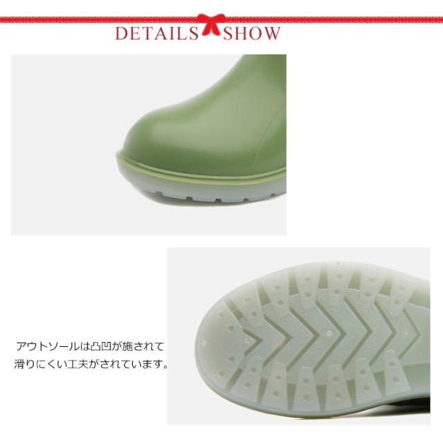| おしゃれなミドル丈レインシューズ。 アッパーはゴム(ラバー)製で防水性があり、裏地は蒸れにくく臭いがこもりにくい仕様です。 アウトソールは凸凹が施されて滑りにくい工夫がされています。 中学生、高校生、大学生の通学、雨の日の自転車通勤、お庭でのバーベキュー、ガーデニングなどの普段使いはもちろん、海や川でのレジャーにも大活躍間違いナシ。 | |