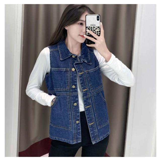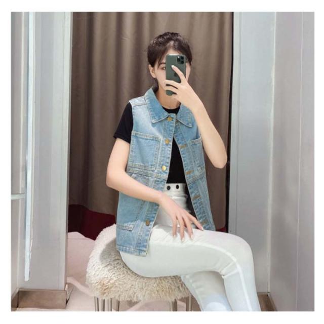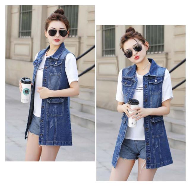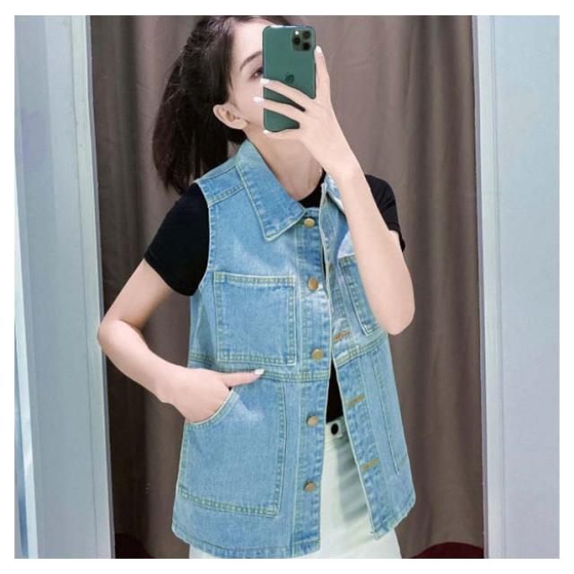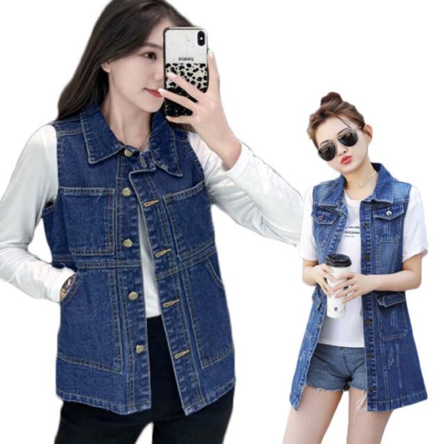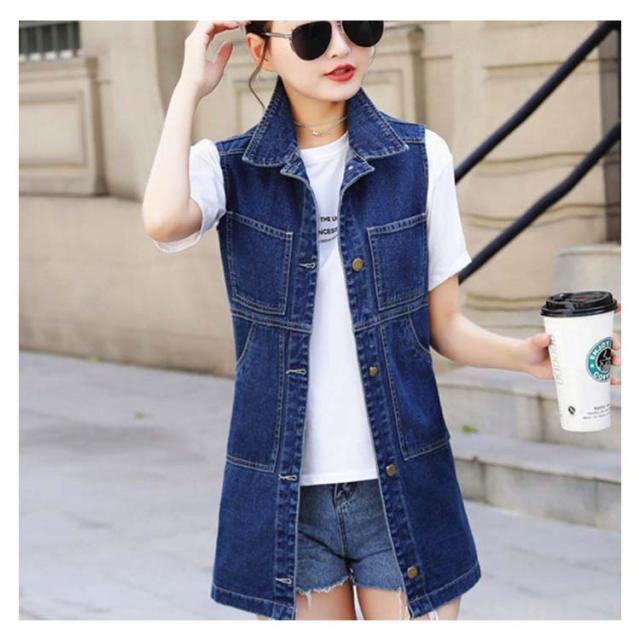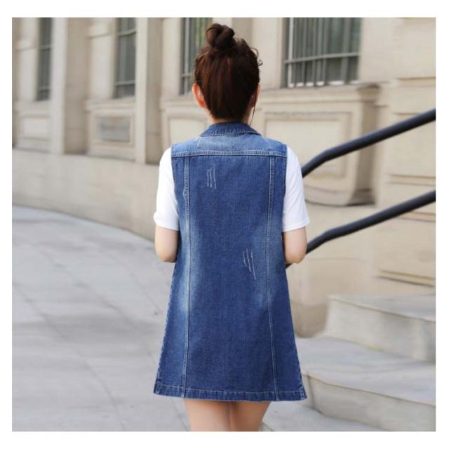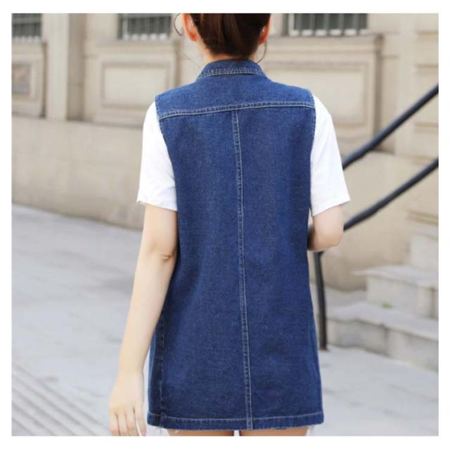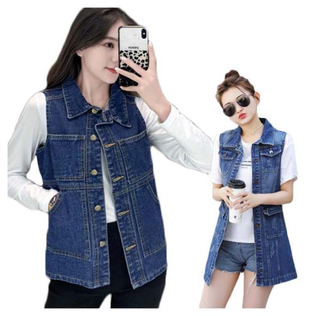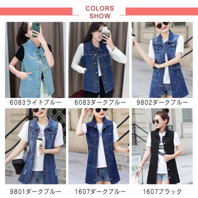 デニムベスト レディース 春秋 大きサイズ デニム ベスト 大きサイズ スタイル ミディアム ロングデニムベスト ノースリーブ 折襟 ダメージ 送料無料 無地 シンプル カジュアル ロング丈 オシャレ フォーマル