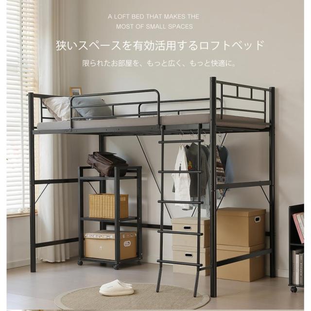 「クーポン配布中」ロフトベッド パイプベッド シングルベッド コンセント付き 宮 高さ170cm ロフトベッド 大人用 二段ベッド 子供部屋 子供ベッド スチール 耐震ベッド 金属 はしご 社員寮 学生寮 北欧風 新生応援