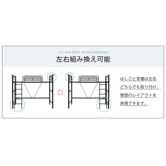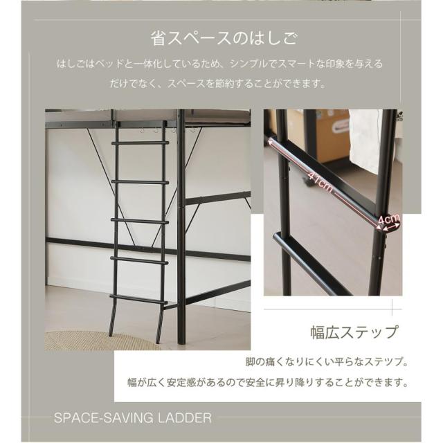 【ロフトベッド】【シングルベッド】収納スペースだけじゃない生活空間にもなるミドルタイプ「お子様の成長」「新居のお部が狭い」などライフスタイルが変わっても今度はシングルベッドとしてずっとお使いいただけるベッドです。