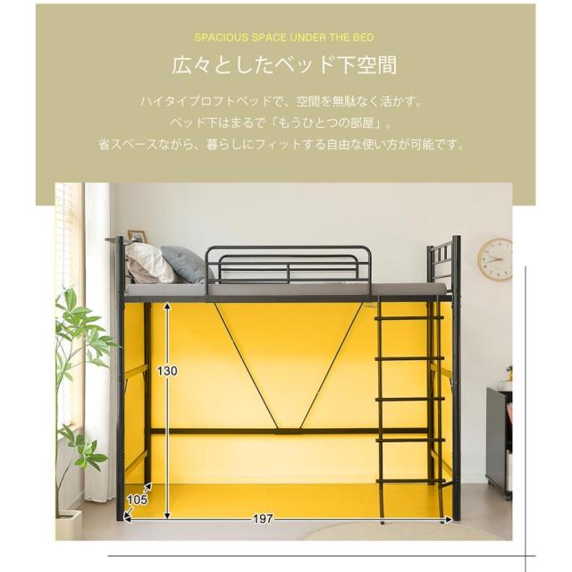 【広々としたベッド下空間】ハイタイプロフトベッドで、空間を無駄なく活かす。ベッド下はまるで「もうひとつの部屋」。省スペースながら、暮らしにフィットする自由な使い方が可能です。