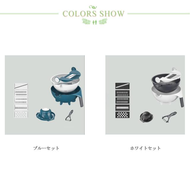 | サイズについての説明 | 多機能野菜調理器セット 薄切り ※モニターの発色具合により、実際の物と色が異なる場合があります。 |