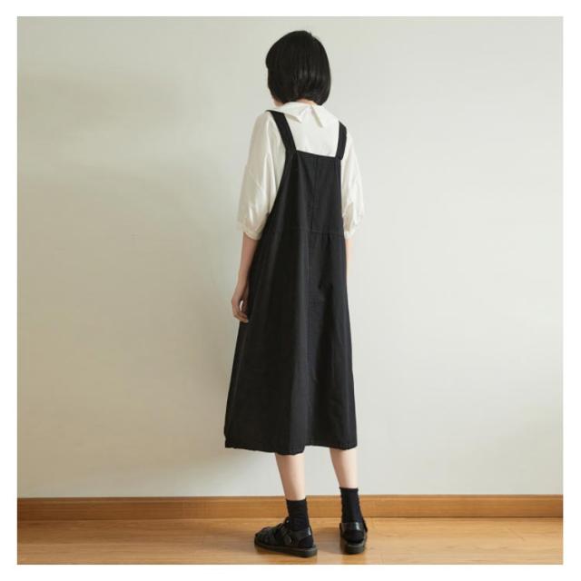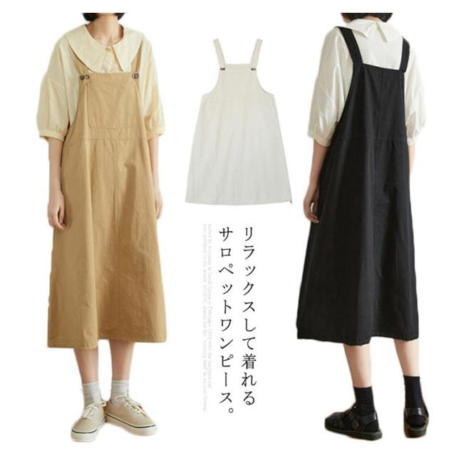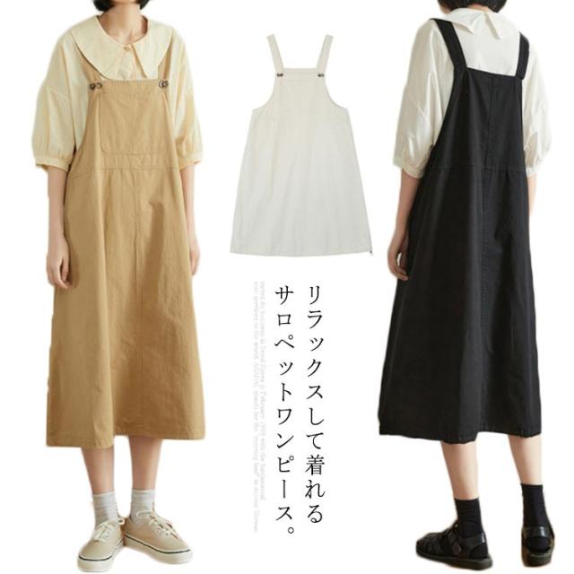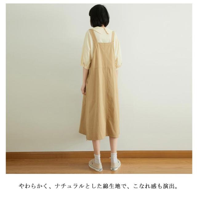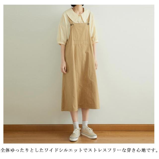 ワンピース サロペット ワンピース 綿 サロペットワンピース 膝下丈 ミディアム丈 大きサイズ ノースリーブ Aライン 体型カバー コットン ナチュラル 可愛い ゆったり 春夏秋送料無料