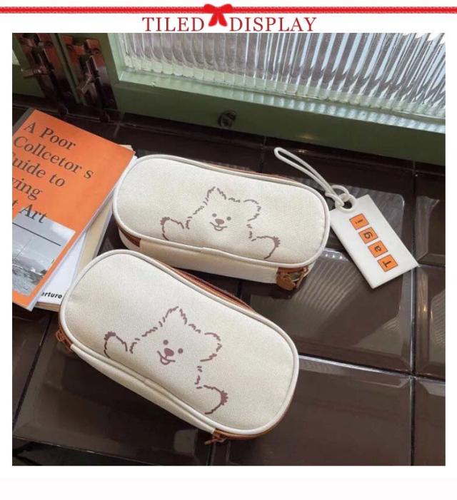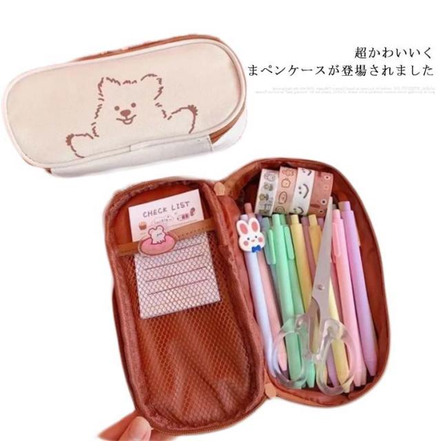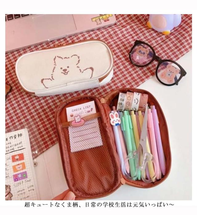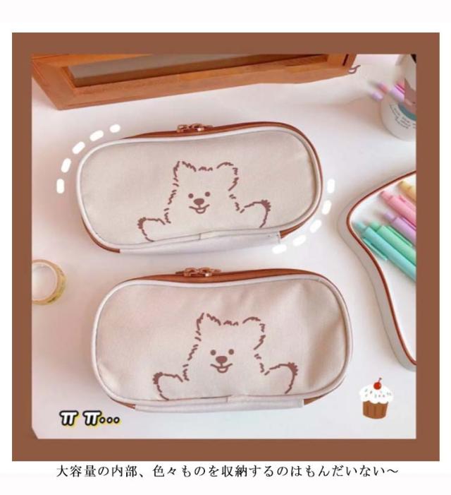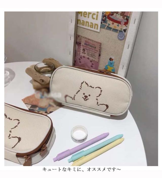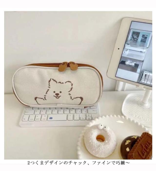 送料無料 ペンケース 筆箱 かわいい クマ 帆布 ズック 大容量 文房具 キュート シンプル 高級感 ファッション おしゃれ 女の子 学生用 シャーペンケース