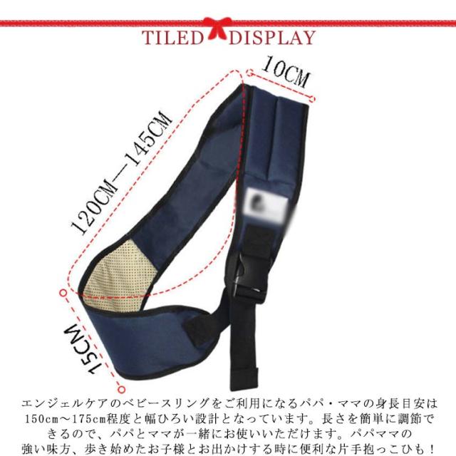 | 【装着カンタン・安心構造】伝統的なベビースリング、紐取り付け取り外しがとても簡単。快適さとフィット感を高め、お子様の体重を均等に分散させる。急な抱っこ要請・歩きたい願望にすぐ対応出来る。肩にかけるだけで、お買い物帰り、外出、お散歩はもちろんお家の中でも大活躍! 【合理的なデザイン】人間工学に基づいて設計されたベビースリングです。赤ちゃんにはもちろんのこと、使うママ、パパの体にも優しい設計のベビースリングです。新生児期から3歳頃まで長い期間使用できます。クッションたっぷりの肩ストラップ体にかかる負担を減小してくれます。 【安定感】ヒップシートはストレッチ素材を使用。ヒップシートが広がるので1〜3歳のお子様なら背中までカバーし安定感がある。肩への負担を軽減。片手での抱っこも楽々できちゃう。 【パパママ兼用サイズ】エンジェルケアのベビースリングをご利用になるパパ・ママの身長目安は150cm〜175cm程度と幅ひろい設計となっています。長さを簡単に調節できるので、パパとママが一緒にお使いいただけます。パパママの強い味方、歩き始めたお子様とお出かけする時に便利な片手抱っこひも! 【軽くてコンパクトな】多機能抱っこ紐折りたたむとコンパクトになり、持ち運びの負担になりません。バッグに入れておいても負担にならない大きさなので、もしもの抱っこ時の備えとして万全です。 | |