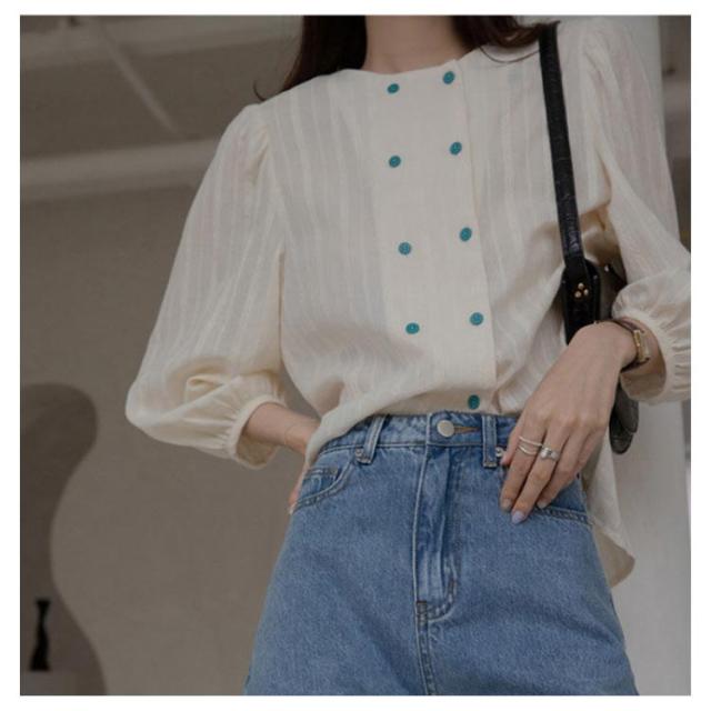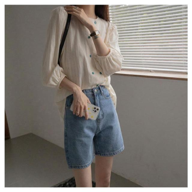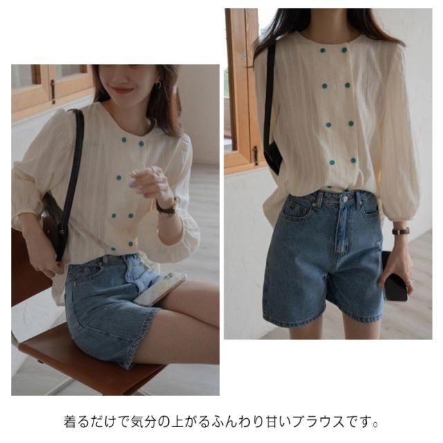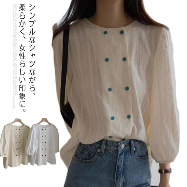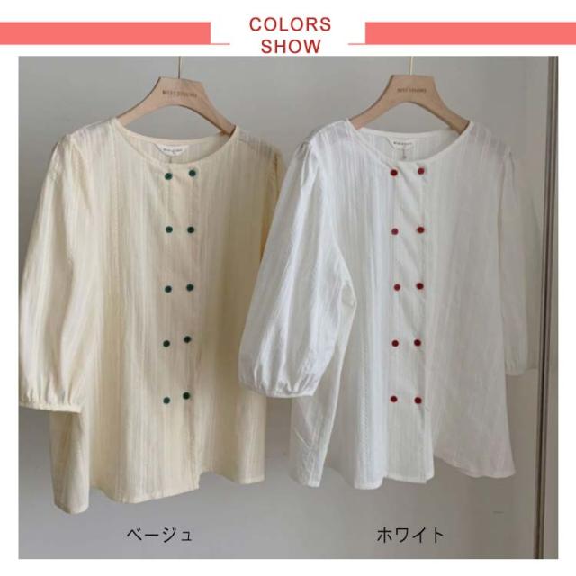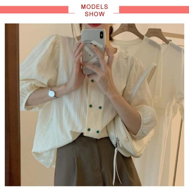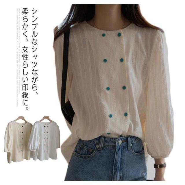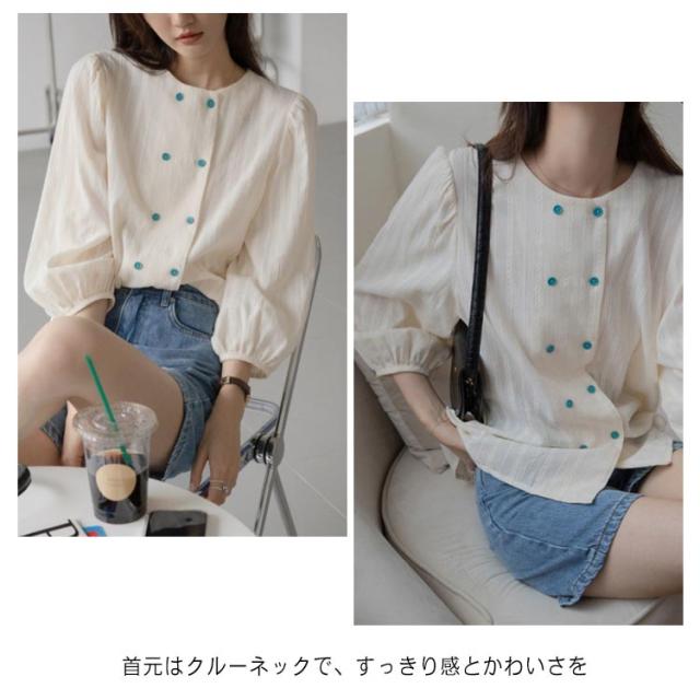送料無料 クルーネック シャツ ブラウス レディース パフスリーブ トップス 半袖 七分袖 7分袖 涼しい おしゃれ 綿 コットン 春 夏 シンプル 着痩せ きれいめ 無地 着痩せ ゆったり 20代 可愛い かわいい