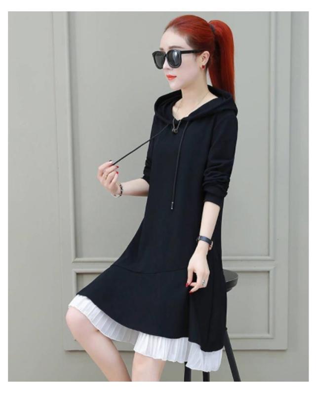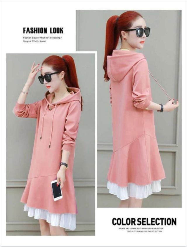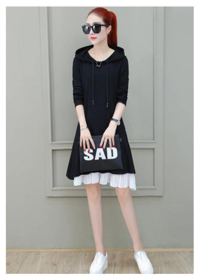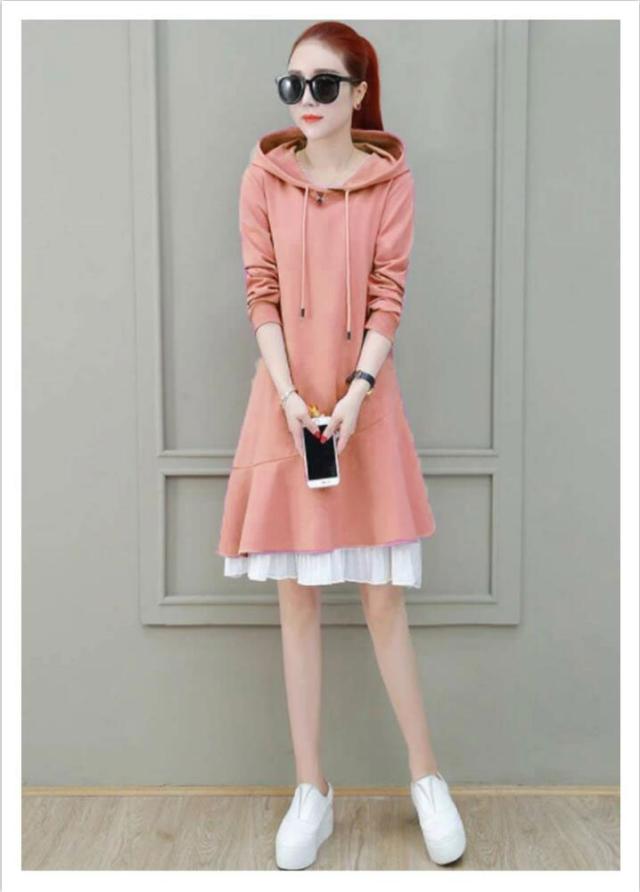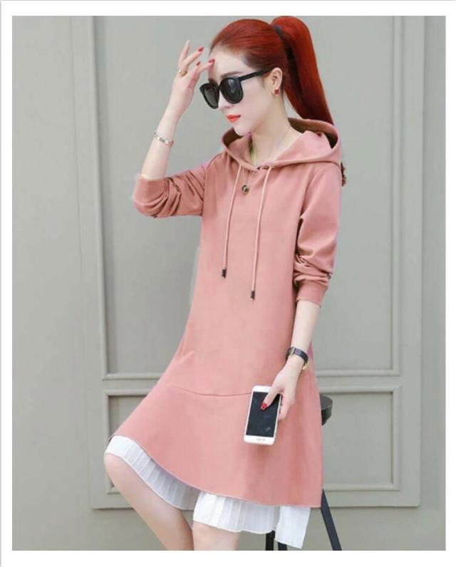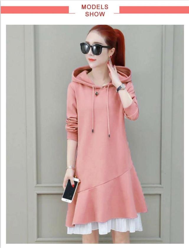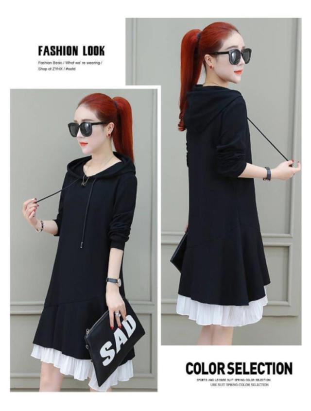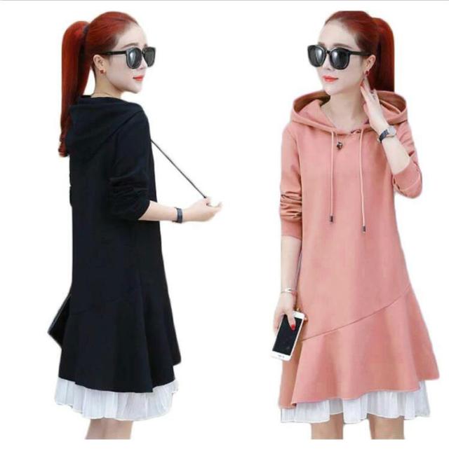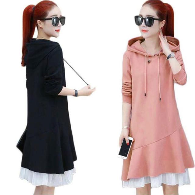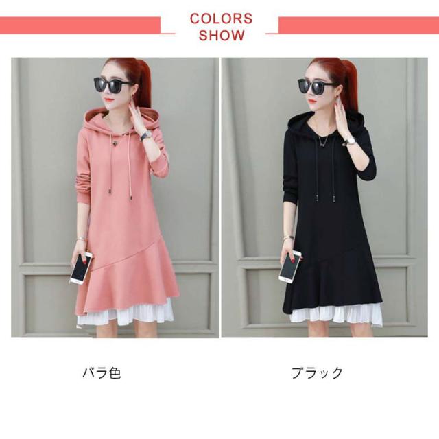 トレーナー レディース 春秋 長袖 ミディアム丈 フリルワンピース Aライン ロングワンピース フード付きワンピース フレアワンピース 無地 送料無料 シンプル カジュアル オシャレワンピース ナチュラル オシャレ スポーツウエア