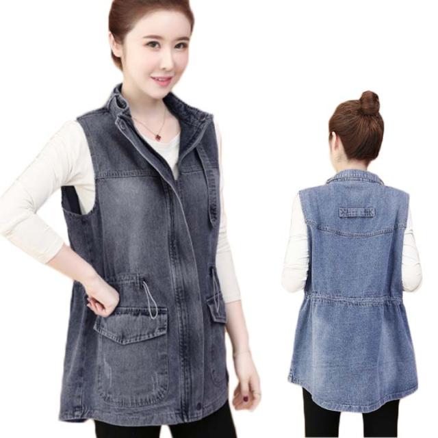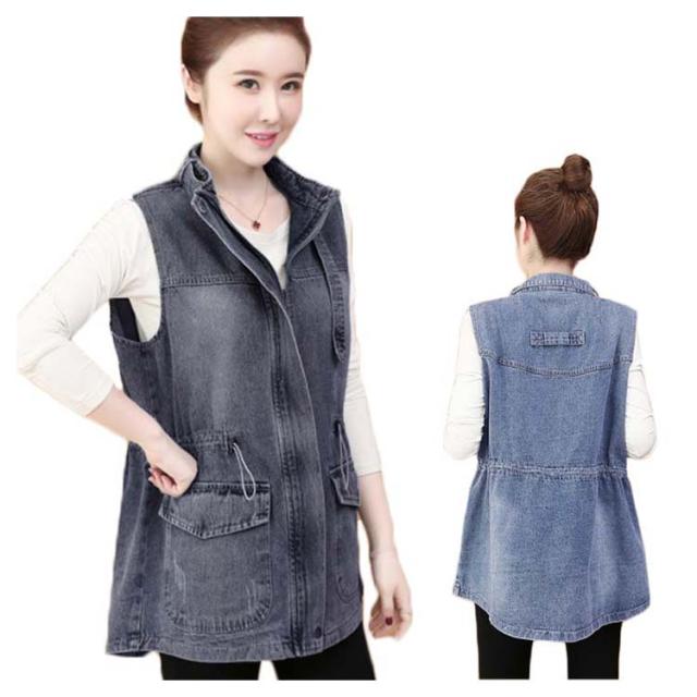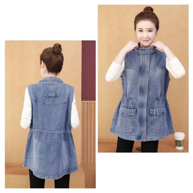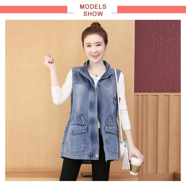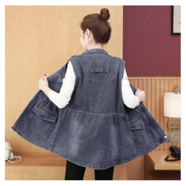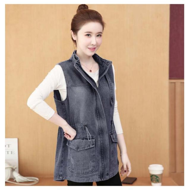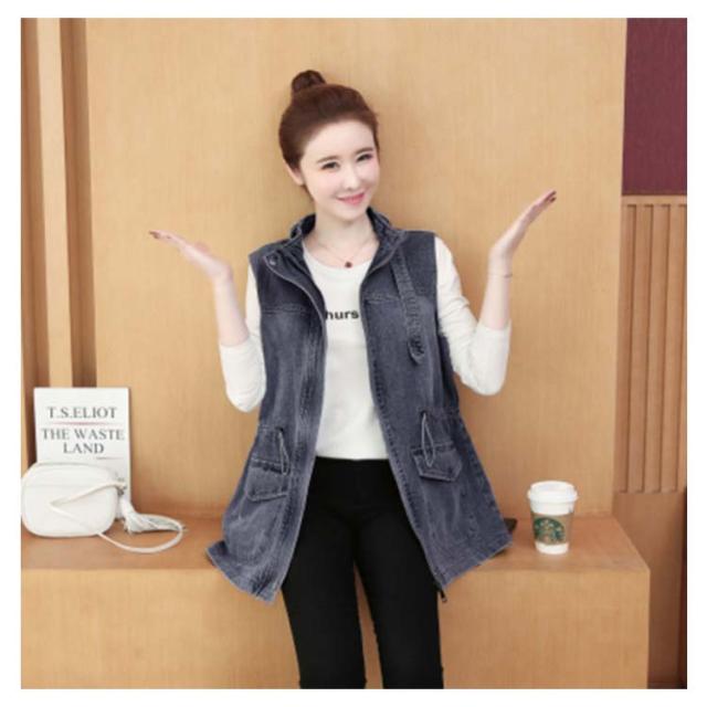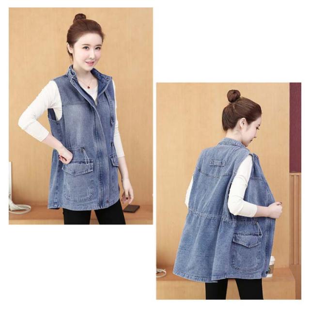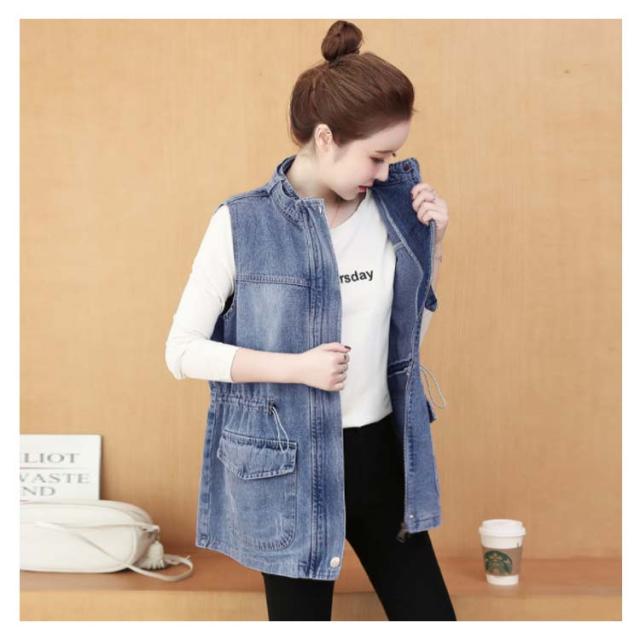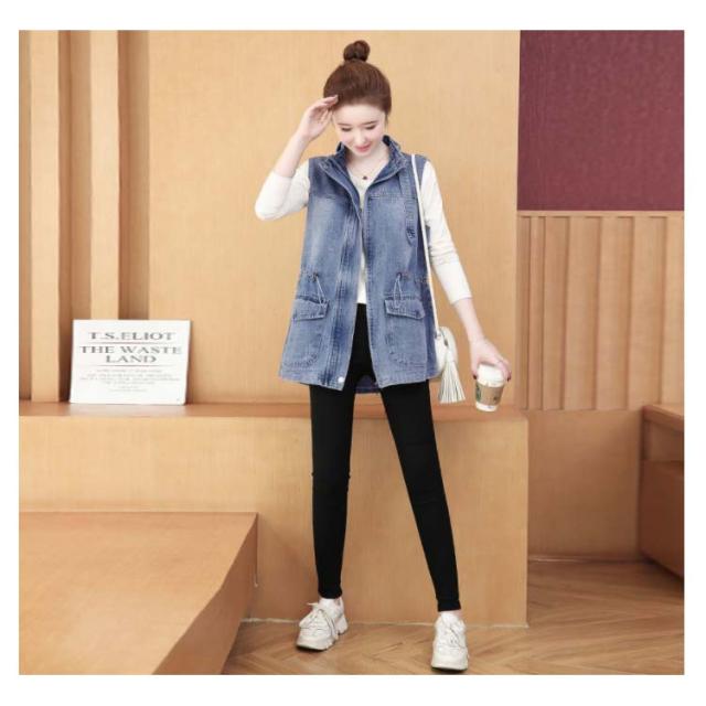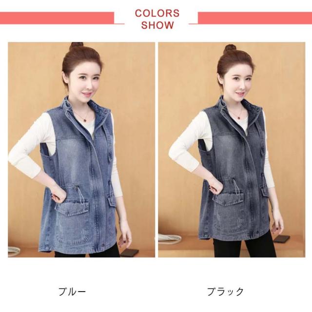 デニムベスト レディース 春秋 デニム 韓国 立ち襟 ジャケット 大きサイズ ゆったり ベスト ミディアム丈 無地 ポケット付き シンプル カジュアル 送料無料 オシャレ 体型カバー おでかけ ナチュラル おでかけ トップス