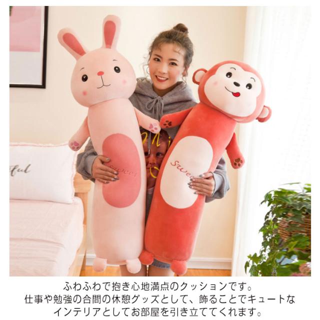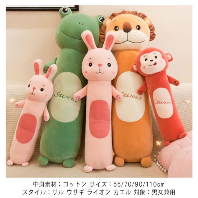 ぬいぐるみ 抱き枕 クッション 大きい かわいい ふわふわ 昼寝枕 安眠 誕生日プレゼント サル ウサギ ライオン カエル 55/70/90/110cm