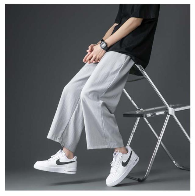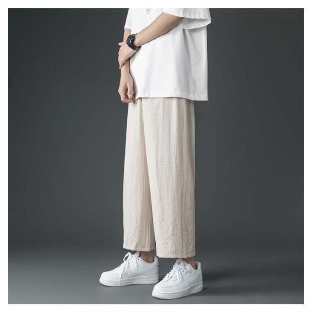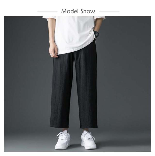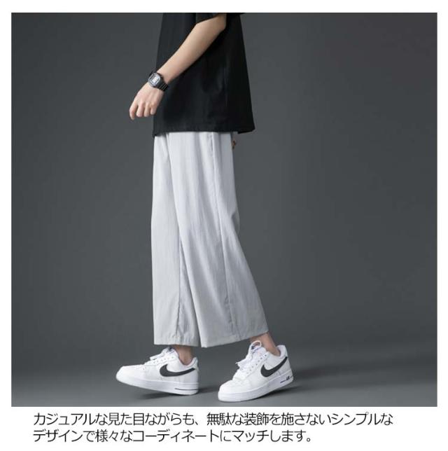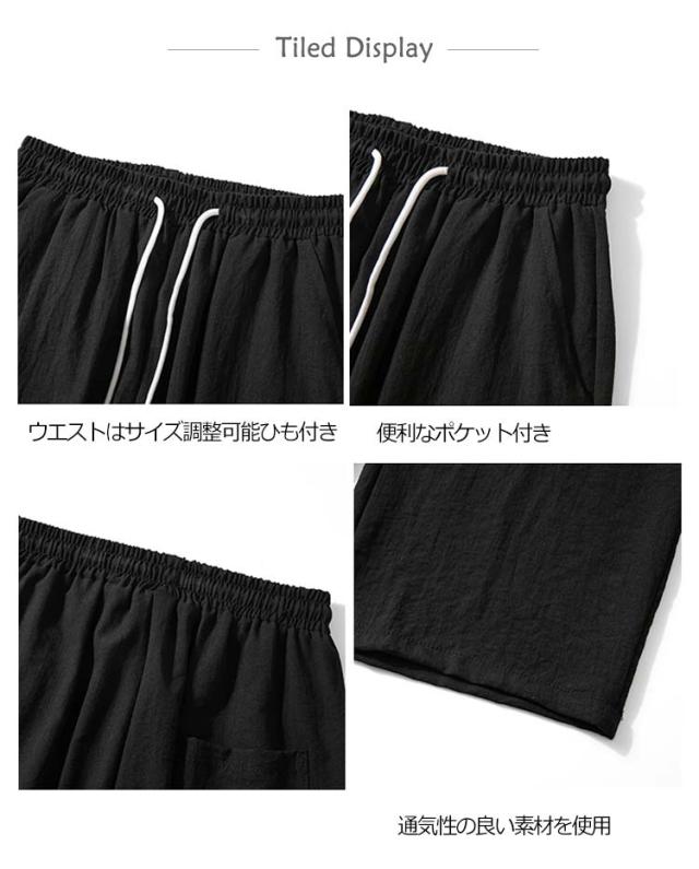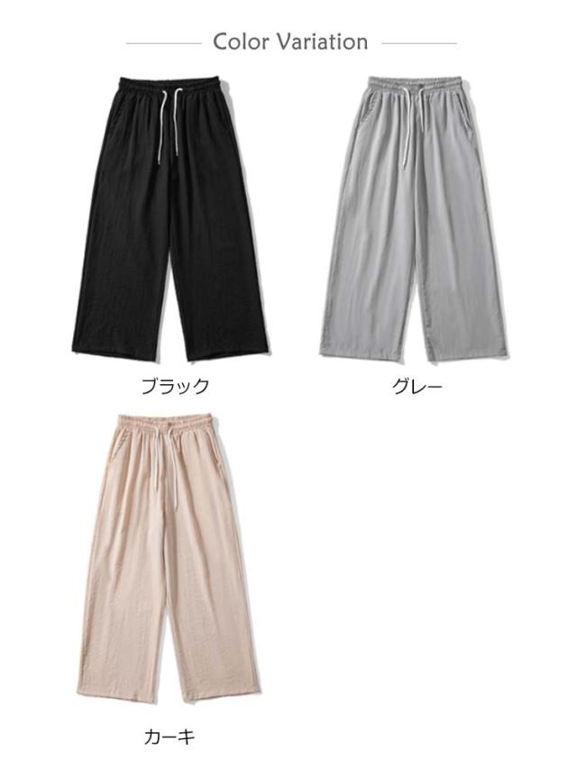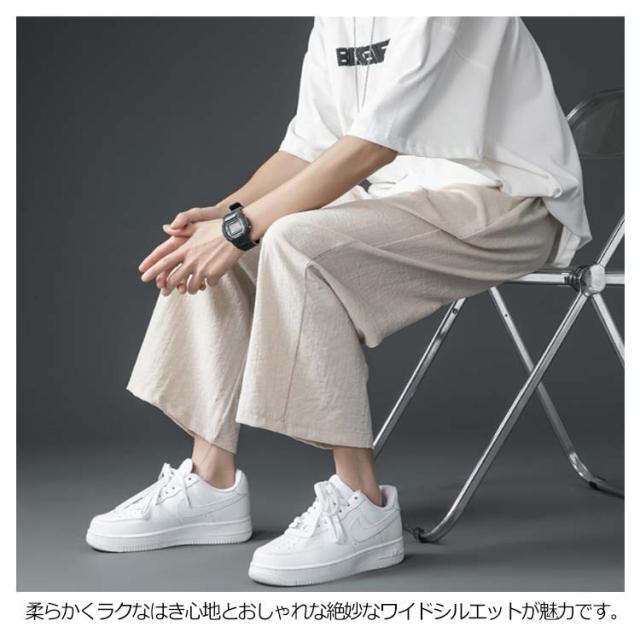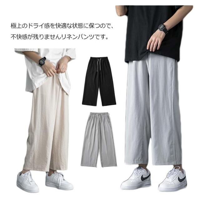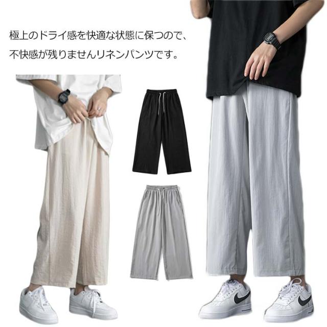 送料無料 ワイドパンツ リネンパンツ メンズ 9分丈 ウエストゴム 無地 綿麻 ゆったり ビッグシルエット ビッグシルエット 春夏秋 おしゃれ 新作