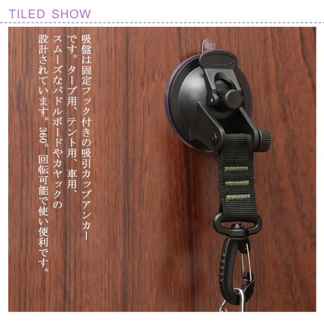 | (360°回転可能吸盤フック)吸盤は固定フック付きの吸引カップアンカーです。タープ用、テント用、車用、スムーズなパドルボードやカヤックの設計されています。360°回転可能で使い便利です。 (使い簡単) カーサイドタープ 吸盤をきれいな滑らかな表面に押し込むだけで、ハンドルを回転させてしっかりとロックし、車を傷つけません。キャンプやピクニックで頻繁に使用されるカーサイドタープやタープテントの固定用具としてご使用いただけます。吸盤を車の側面、または、上部に設置してストレッチコードを装着しテントをタープに引っかけることで固定できます。 (強力なホールド)タープ用吸盤の直径は7cmに到ります。接着面が広いものほど安定しやすい。レバー式の吸盤フックは吸盤内に真空状態を作ることで吸着力を発揮します、10kgの重さに耐えられます。 (素材)タープ吸盤は強力、耐久性、軽量のために固体材料(ABS&PVC)で作られています。この吸盤面の部分に保護カバーが付属しています。吸着力はより強く、耐久性も普通より高まります。外した後に吸盤面を洗えば、何度でも繰り返し使えます。 (幅広い汎用性)アウトドアで、カーサイドタープに使うだけではなく、タープ連結、テント、サンシェードの固定など様々なシーンで大活躍しています。また、車でキャンプや旅行をする時荷物が多いためトランクをうまく閉じられない場合、吸盤を車の後に着けてたら固定し、荷物を落とさないようにします。 | |