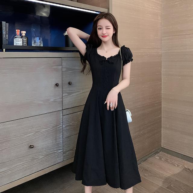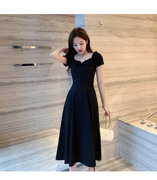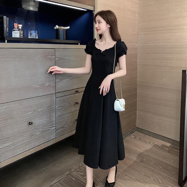 サマー着痩せトレロワンピースマキシスカートウエストギャザー半そでエレガントレディース
