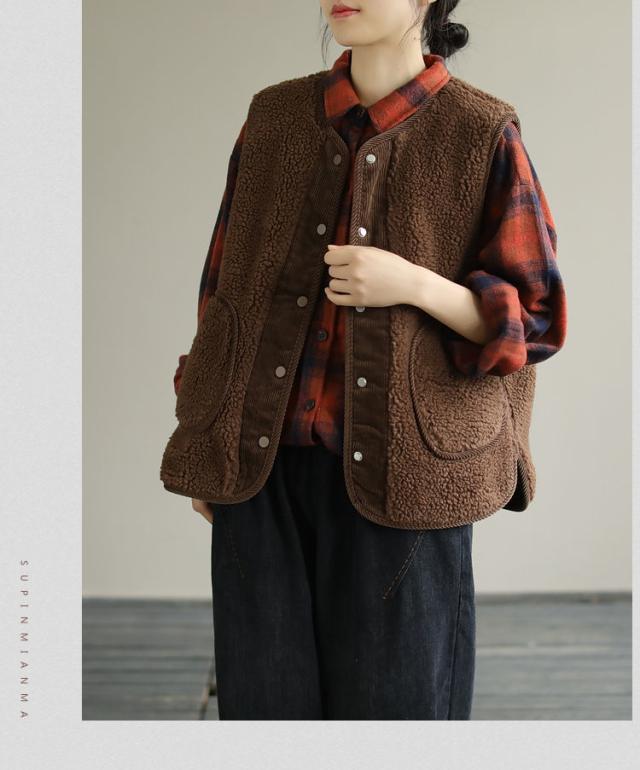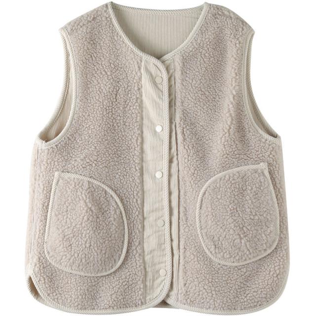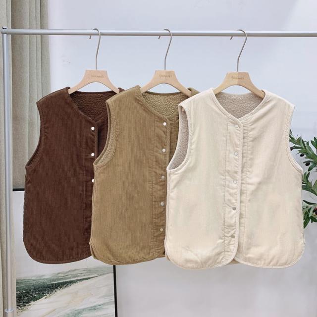 コーデュロイリバーシブルボアゆったりライトアウターおしゃれ秋冬ノースリブジレレディース