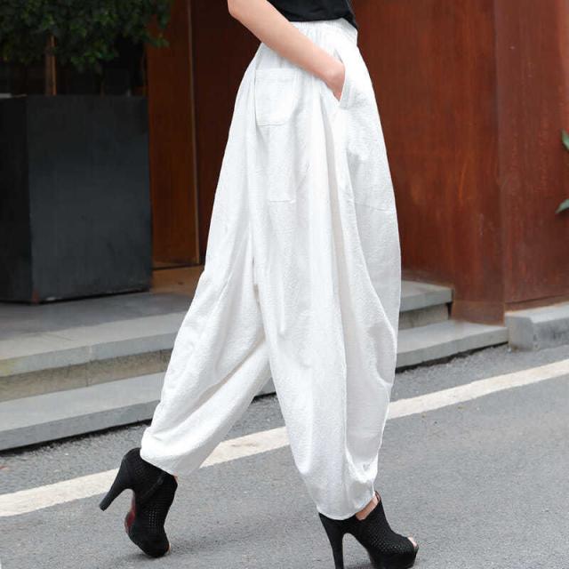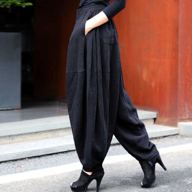 コットンリネンバルーンパンツサルエルパンツ薄手大きいサイズオーバーサイズ女細身夏用スタイリッシュアメカジパンツ