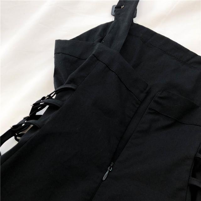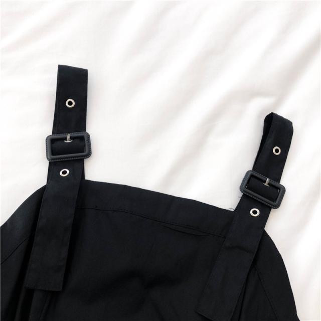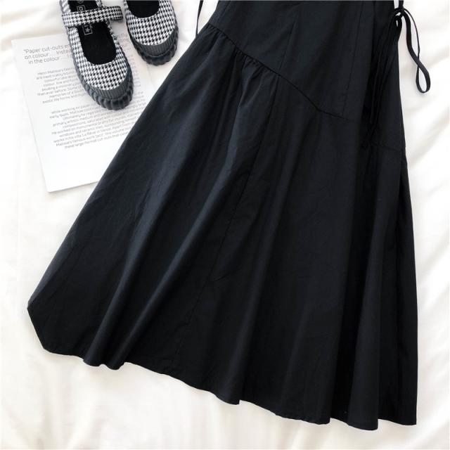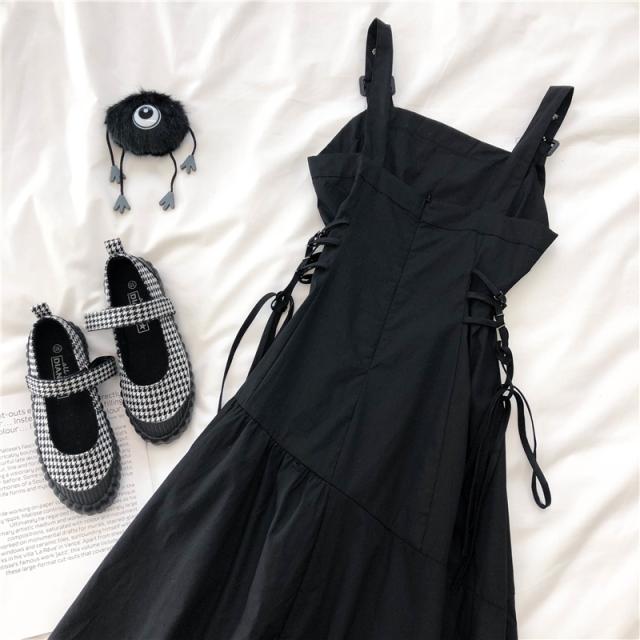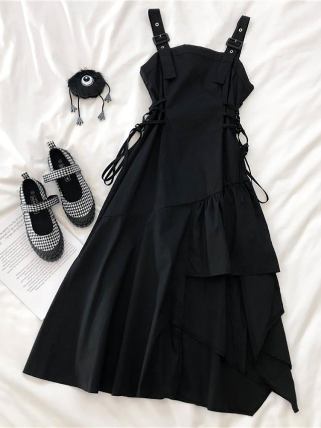 サスペンダースカートワンピ吊りスカートアシンメトリーマキシワンピースデート夏用ブラックレディース