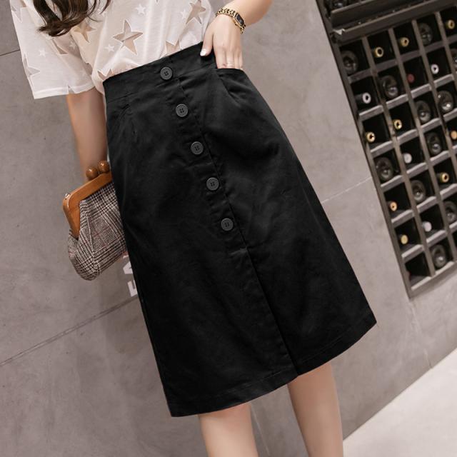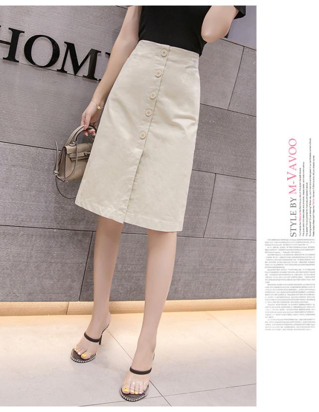 サマースリット台形スカートホワイトデニムロング丈スタイリッシュハイウェスト