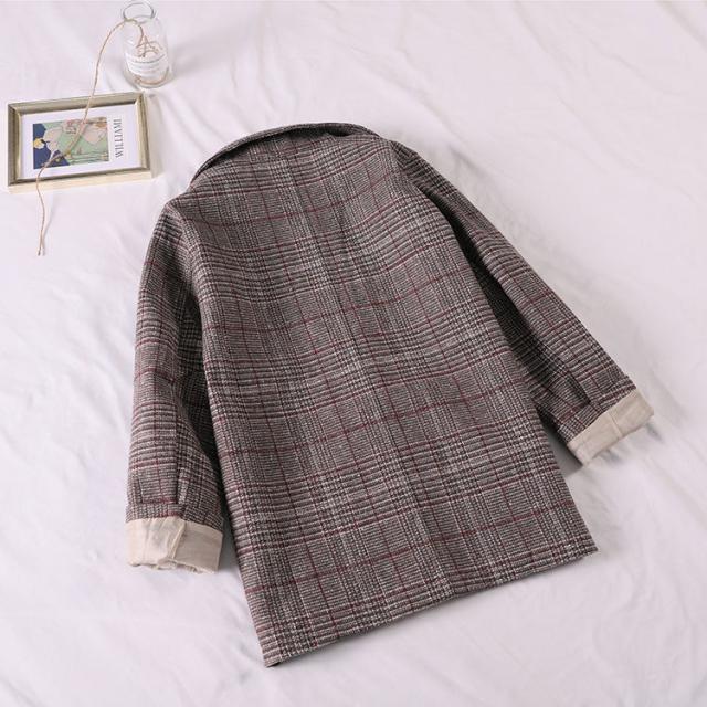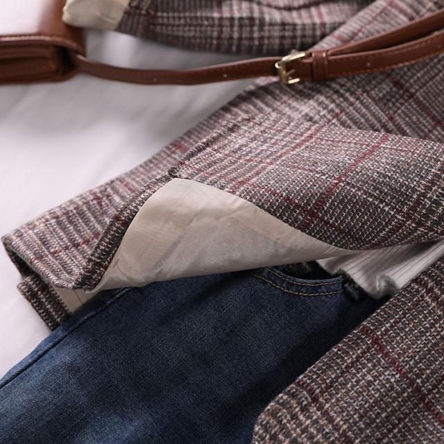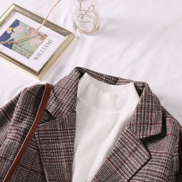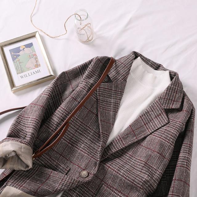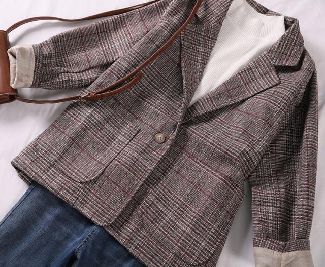 グレンチェック柄女子学生ブレザービッグシルエットヴィンテージ風スタイリッシュ秋用春秋カジュアル春夏