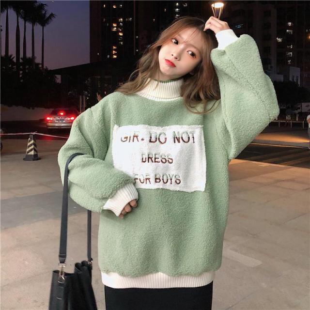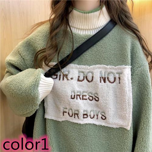 ジャケットトップスボアルーズお洒落なデザイン秋冬用タートルネックトレーナー防寒レディース