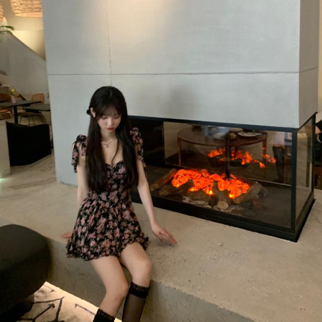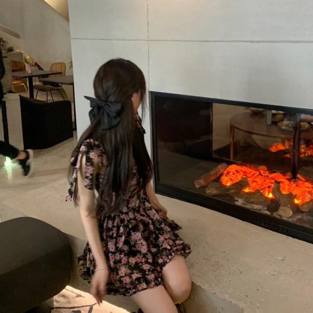 小花柄リボンタイキャミワンピース夏着スタイリッシュ花レディース