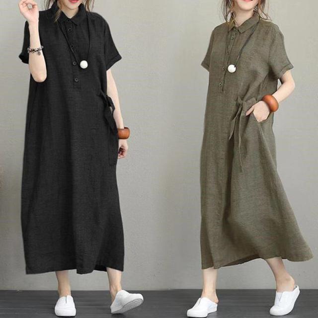 着痩半袖ボレロリネンワンピースマキシスカート大きいサイズゆったりお洒落なデザインサマー欧米スタイルカジュアル亜麻レディース