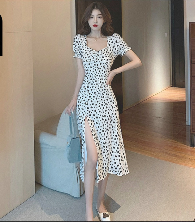 ベンツ入りシフォンワンピ夏服レディーススタイリッシュドット柄エレガント春夏ガウン