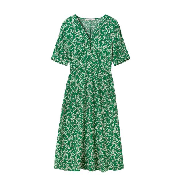 夏着小花柄シフォンワンピースマキシスカートレディースおしゃれウエストギャザーエレガント春夏