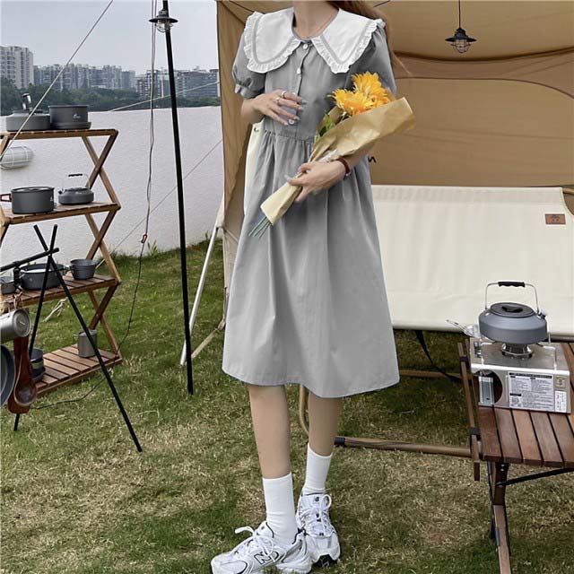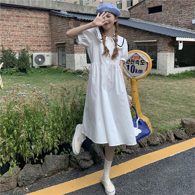 夏服中学生ワンピースロング丈スカート可愛いスタイリッシュレディースえり