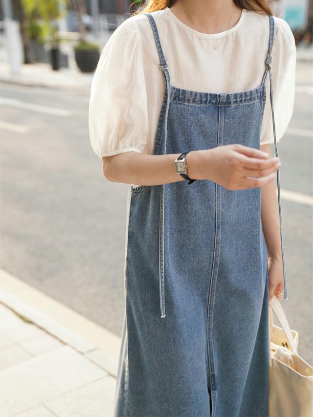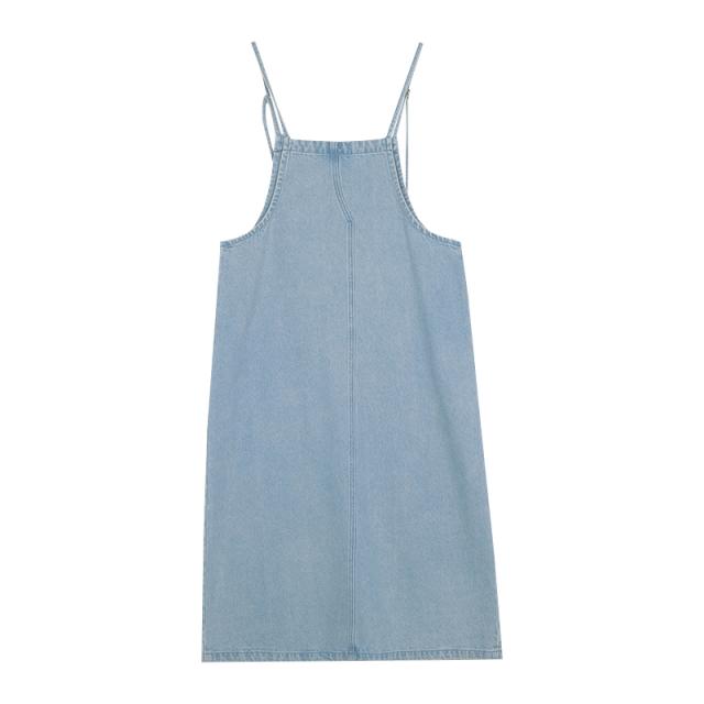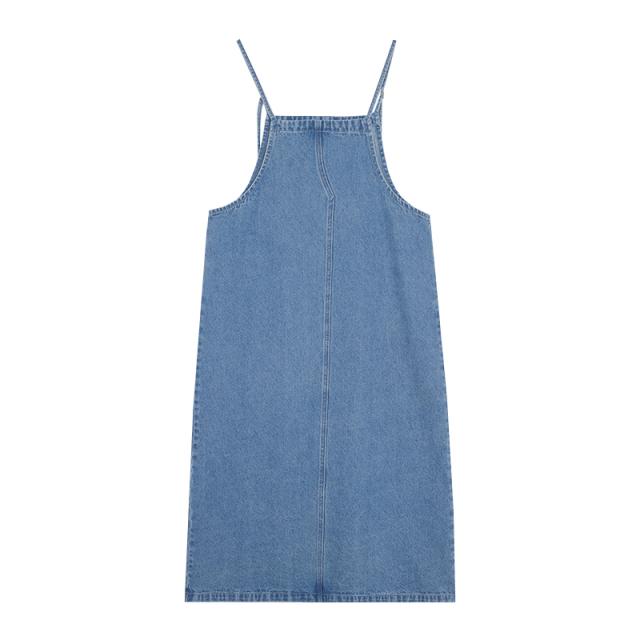 サマーサスペンダースカートキャミソールワンピースデニムワンピースシアーゆったりロング丈レディース