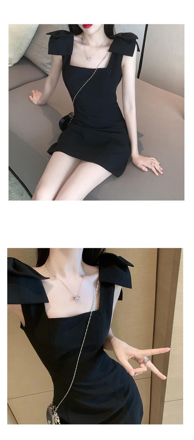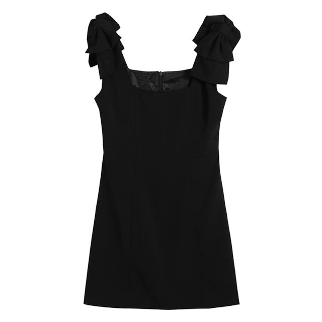 夏用蝶結びキャミソールワンピースブラックスリムウエストギャザーミニスカートセクシー系エレガントレディース