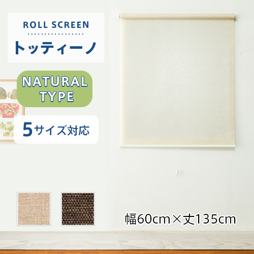 既製ロールスクリーン/幅60cm×丈135cm/天然調の優しい風合いを持つナチュラルタイプのロールスクリーン「トッティーノ」