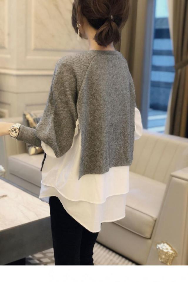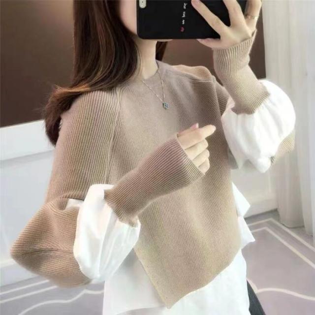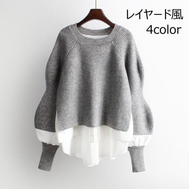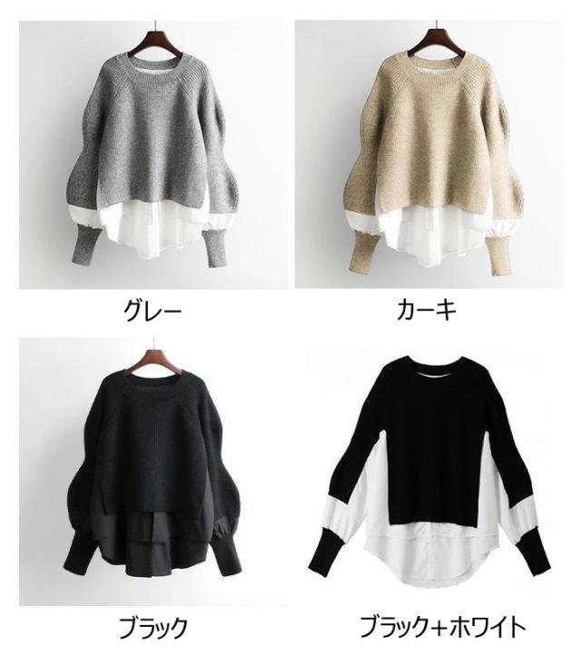 トップス 切り替え ニット セーター 長袖 レイヤード風 ドッキング 重ね着風 レディース オシャレ トレンド 韓国 オフィス カジュアル きれいめ