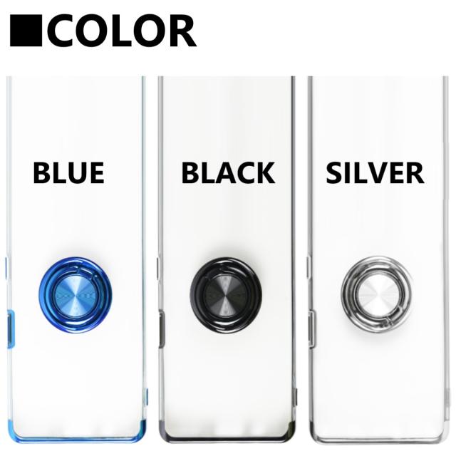 背面がクリアとメタリックバンパーデザインのスマホリング付きスマホケースです。