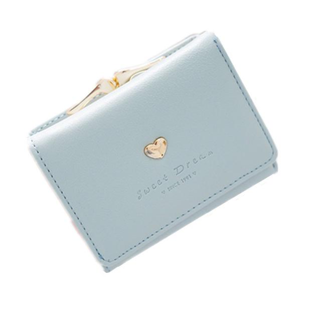 Kingsie レディースミニ財布 がま口 三つ折り短財布 ウォレット コンパクト 可愛い ハート カードいれ 小銭入れ プレゼント (ブルー)