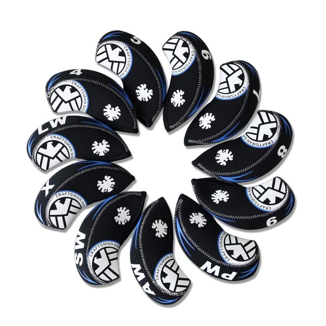 CRAFTS M AN(クラフトマン)ゴルフヘッドカバー コスモシリーズ アイアンカバー紛失防止のX番登場 11枚入り ブラック/ホワイト (ブラック)