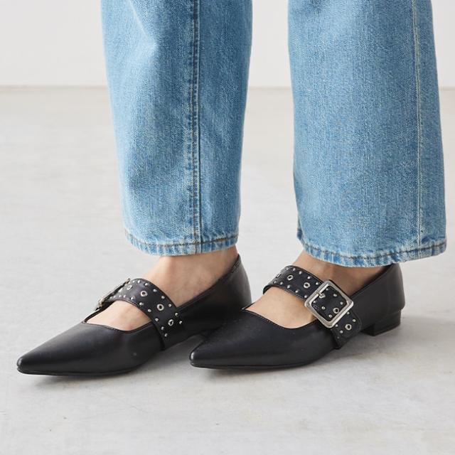 ポインテッドトゥ スタッズベルト パンプス [ menue メヌエ ]