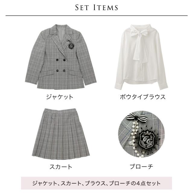 チェックプリーツスカート&ダブルボタンジャケットスーツセット