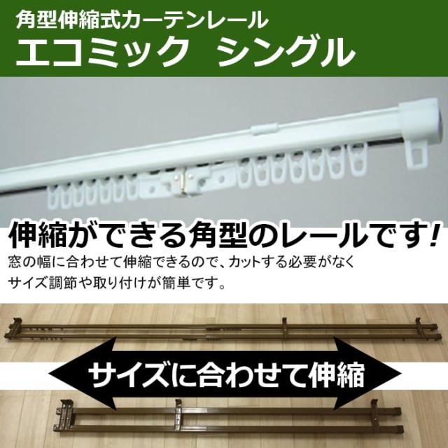 カーテンレール 伸縮 スチール シングル 正面付け 天井付け 1m用(0.6〜1m) 角型 伸縮カーテンレール エコミック (Y) カット不要 部品付き ブラケット付き 取付けネジ付き 調整可能 ホワイト アンバー 取り付け簡単 部品完全セット