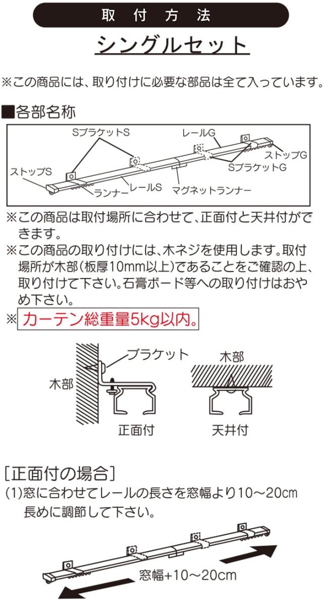 ■レールの長さ:[正面付け] 0.6〜1.0m、[天井付け] 0.8〜1.0m