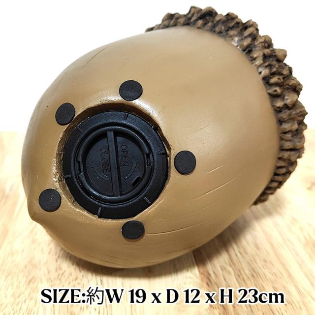どんぐりに乗ったリスがとっても可愛い貯金箱です。