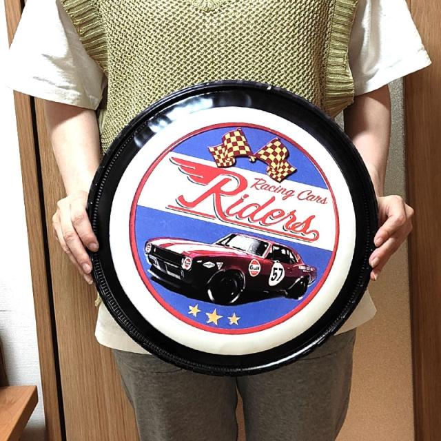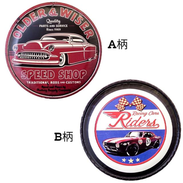 ブリキ看板 かっこいい レーシングカー アンティーク 車 壁掛け 丸形 ビンテージ アメリカン プレート 壁飾り おしゃれ 雑貨 インテリア 可愛い サーファー カフェ 店舗