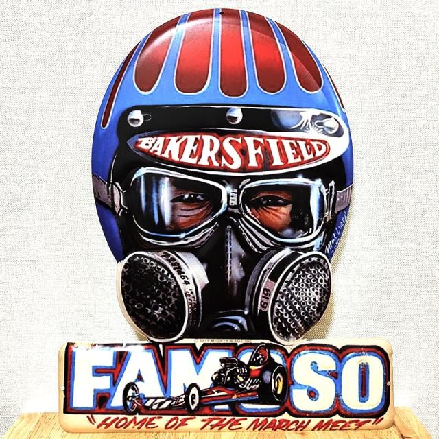 ヘルメットを被った男性が迫力あるデザインのかっこいいブリキ看板です!