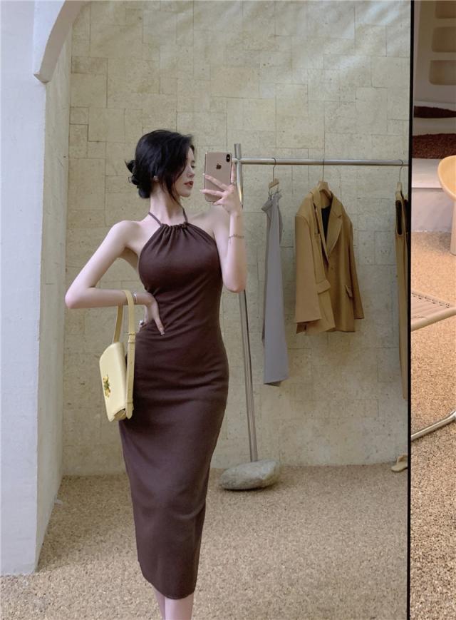 ウエストギャザー夏用ニットキャミソールワンピースマキシスカートスタイリッシュエレガントレディース