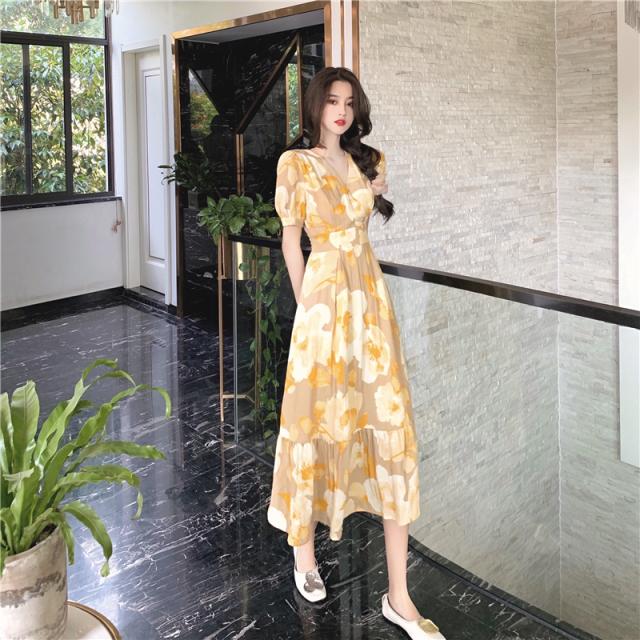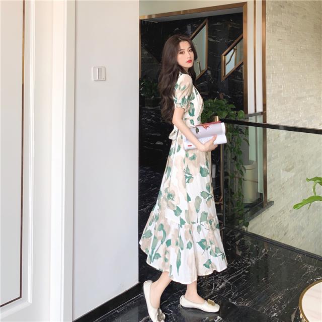 デートアンクル丈花柄ワンピースロングドレスお洒落なデザイン春夏レディース