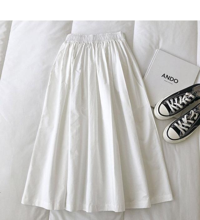 普段着サマーフレアスカートロングスカート無地おしゃれ中小学生ハイウエスト台形レディース