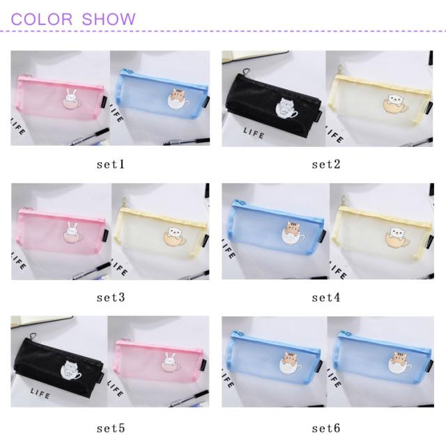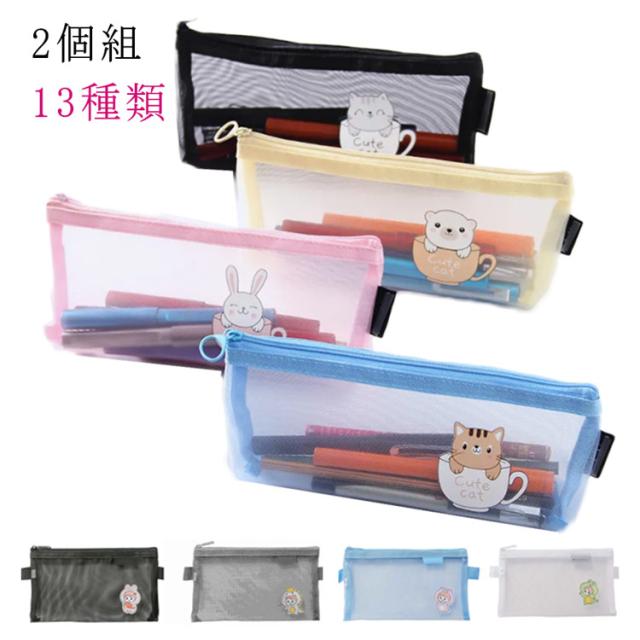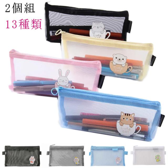 透明ペンケース 透明 クリア 筆箱 おしゃれ ペンケース 2個組 大容量 クリアペンケース 送料無料 プリント おしゃれ シンプル 筆箱 かわいい グリッド ケース メッシュ 軽量 筆入れ 大容量 収小物入れ 収納ポーチ 学生 女子